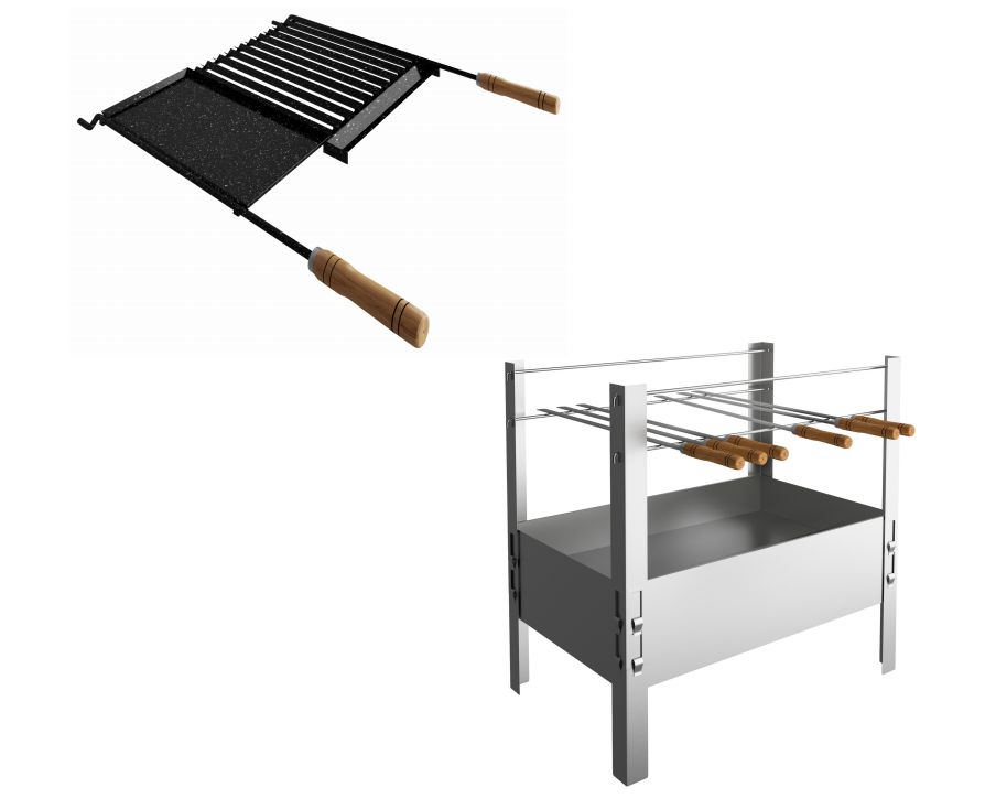 Essa grelha acopla perfeitamete na churrasqueira, permitendo que você prepare um belo grelhado ou um churrasco perfeito, pois acompanha 6 espetos.