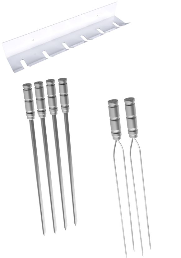 2 espetos duplos cromados 05mm diâmetro, uso geral 60 cm de lâmina cabo alumínio.