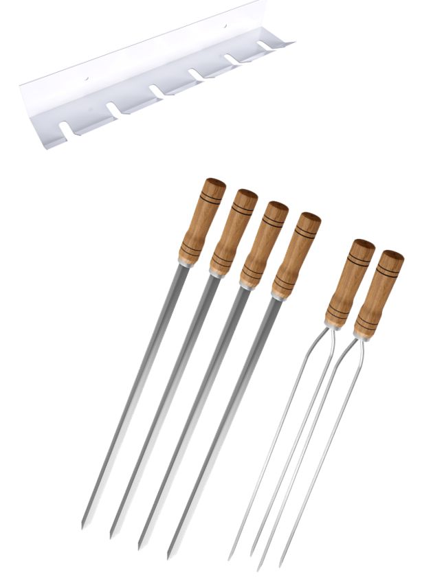 2 espetos duplos cromados, 5.4mm de diâmetro, 80 cm de lâmina cabos madeira.
